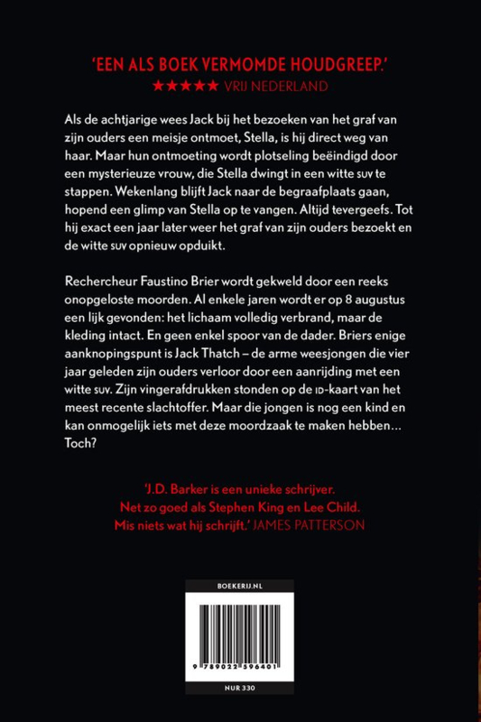 Rechercheur Faustino Brier wordt gekweld door een reeks onopgeloste moorden. Al enkele jaren wordt er op 8 augustus een lijk gevonden: het lichaam volledig verbrand, maar de kleding intact. En geen enkel spoor van de dader. Briers enige aanknopingspunt is Jack Thatch, de arme weesjongen die vier jaar geleden zijn ouders verloor door een aanrijding met een witte SUV. Zijn vingerafdrukken stonden op de ID-kaart van het recentste slachtoffer. Maar Jack is nog maar een kind en kan onmogelijk iets met deze moordzaak te maken hebben… Toch?
