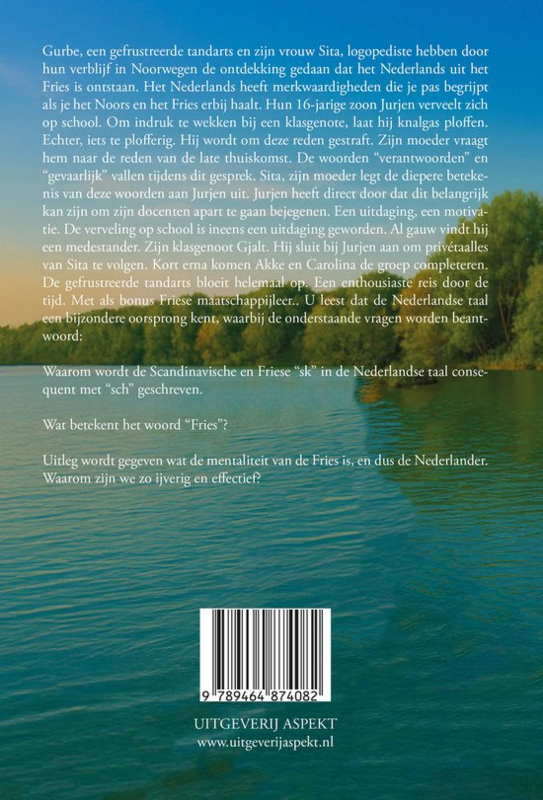 Gurbe, een gefrustreerde tandarts en zijn vrouw Sita, logopediste hebben door hun verblijf in Noorwegen de ontdekking gedaan dat het Nederlands uit het Fries is ontstaan. Het Nederlands heeft merkwaardigheden die je pas begrijpt als je het Noors en het Fries erbij haalt. Hun 16-jarige zoon Jurjen verveelt zich op school. Om indruk te wekken bij een klasgenote, laat hij knalgas ploffen. Echter, iets te plofferig. Hij wordt om deze reden gestraft. Zijn moeder vraagt hem naar de reden van de late thuiskomst. De woorden “verantwoorden” en “gevaarlijk” vallen tijdens dit gesprek. Sita, zijn moeder legt de diepere betekenis van deze woorden aan Jurjen uit. Jurjen heeft direct door dat dit belangrijk kan zijn om zijn docenten apart te gaan bejegenen. Een uitdaging, een motivatie. De verveling op school is ineens een uitdaging geworden. Al gauw vindt hij een medestander. Zijn klasgenoot Gjalt. Hij sluit bij Jurjen aan om privétaalles van Sita te volgen. Kort erna komen Akke en Carolina de groep completeren. De gefrustreerde tandarts bloeit helemaal op. Een enthousiaste reis door de tijd. Met als bonus Friese maatschappijleer.. U leest dat de Nederlandse taal een bijzondere oorsprong kent, waarbij de onderstaande vragen worden beantwoord: Waarom wordt de Scandinavische en Friese “sk” in de Nederlandse taal consequent met “sch” geschreven. Wat betekent het woord “Fries”? Uitleg wordt gegeven wat de mentaliteit van de Fries is, en dus de Nederlander. Waarom zijn we zo ijverig en effectief?
