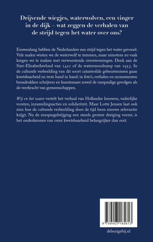 Wij en het water vertelt het verhaal van drijvende wiegjes, Hollandse leeuwen, waterwolven, vaderlijke vorsten, inzamelingsacties, solidariteit en een vinger in de dijk. Maar Lotte Jensen laat ook zien hoe de culturele verbeelding door de tijd heen nieuwe relevantie krijgt. Nu de zeespiegelstijging een steeds grotere dreiging vormt voor toekomstige generaties, is het onderkennen van onze kwetsbaarheid belangrijker dan ooit.