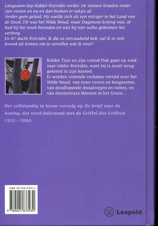 OverzichtLangzaam liep ridder Ristridin verder. De sneeuw kraakte onder zijn voeten en nu en dan braken er takjes af. Verder geen geluid. Hij voelde zich als een reiziger in het Land van de Dood. Dit was het Wilde Woud, waar Dagonout koning was, al had hij het nooit betreden en wist hij niet welke geheimen het verborg. En ik? dacht Ristridin. Ik die ze ontraadseld heb, zal ik er ooit levend uit komen om te vertellen wat ik weet?