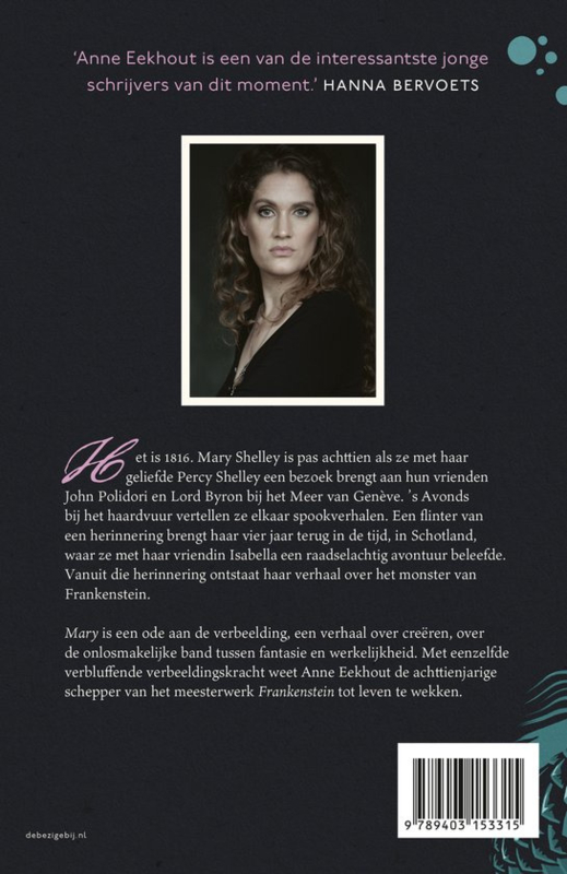 OverzichtMary Shelley verblijft op haar veertiende bij een familie in Schotland, waar een innige vriendschap ontstaat met Isabella Baxter. Samen dwalen ze in het gebied dat al eeuwen verhalen herbergt over monsters en geesten, en op een dag stuiten ze diep in het bos op een man die geen man is. De ledematen log en lelijk, een hoofd dat noch menselijk, noch dierlijk is. Vier jaar later brengt Mary met haar geliefde Percy Shelley een bezoek aan haar vrienden John Polidori en Lord Byron, bij het Meer van Genève. ’s Avonds bij het haardvuur vertellen ze elkaar verhalen. Een flintertje herinnering brengt haar terug naar haar tijd met Isabella in Schotland, en ook naar David Booth, een zeer intelligente, charismatische, maar tegelijk ook griezelige man, die een grote interesse in Mary en Isabella ontwikkelde. Dan dient ook het monster uit het bos zich weer aan, en vanuit die gedachte ontstaat haar verhaal over het monster van Frankenstein. Mary is een ode aan de verbeelding, een verhaal over creëren, over de onlosmakelijke band tussen fantasie en werkelijkheid. En evenals Mary Shelley toont Anne Eekhout de kracht van een vrouw wanneer die iets ter wereld brengt wat niemand voor mogelijk had gehouden.