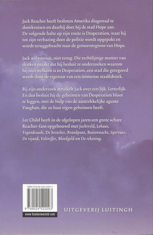 OverzichtEx-militair agent en einzelgänger Jack Reacher leidt een zwervend bestaan in de Verenigde Staten en is altijd onderweg.