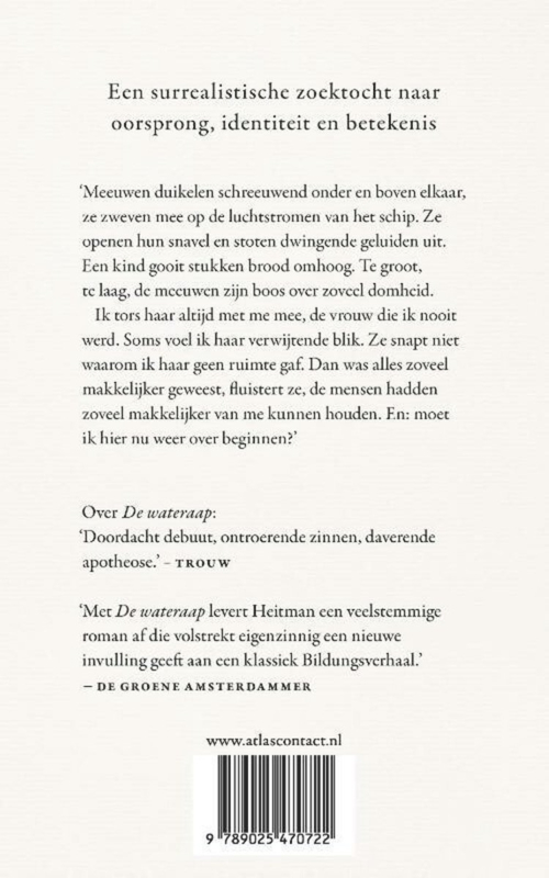 ‘Wormmaan’ van Mariken Heitman gaat over Elke die na tegenslag op haar werk met een vergeten erwtenras naar een Waddeneiland vertrekt. Ze wil de erwt, een tweeslachtig ras dat zich nauwelijks heeft laten sturen, terugbrengen naar zijn wilde kern. Elke realiseert zich dat zij gewassen vormt zoals de maatschappij háár probeert te vormen. Wie of wat blijft er over als je alles afpelt dat door anderen aan je werd opgedrongen? Parallel aan Elkes zoektocht verhalen onze voorouders over Ra, eenling op drift, die aansluiting zoekt bij wat later de eerste boeren zullen blijken. Ra, net als Elke in het heden, lijkt nergens bij te passen. Moet deze mens veranderen of de groep – of misschien hun gezamenlijke wereldbeeld? Langzaam wordt duidelijk hoe de mens altijd op zoek is naar oorsprong, identiteit en betekenis. ‘Wormmaan’ is een ontroerende zoektocht inwaarts waarin dwergolifanten, erwten en de wording van een mens samenkomen.
