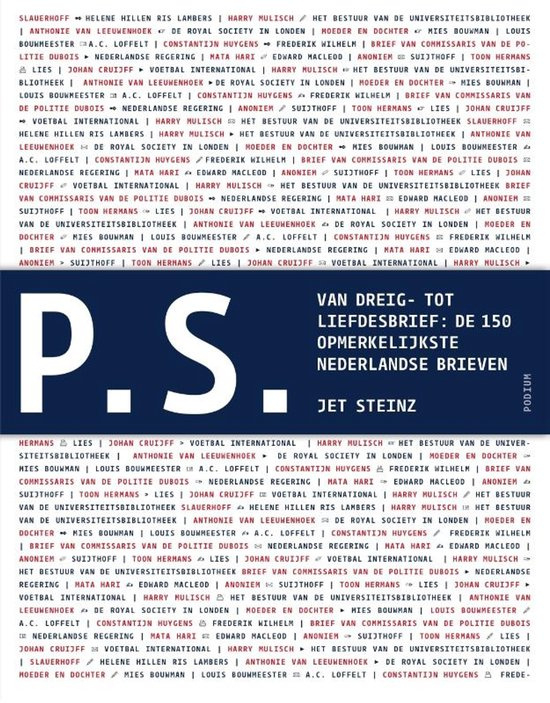 Steinz, Jet ; P.S.Een hartverscheurende afscheidsbrief van de tot de brandstapel veroordeelde Maeyken Wens, Appie Baantjers keurige sollicitatie aan de Amsterdamse politie, P.C. Hoofts met eigen bloed ondertekende smeekbede aan Heleonora Hellemans,…